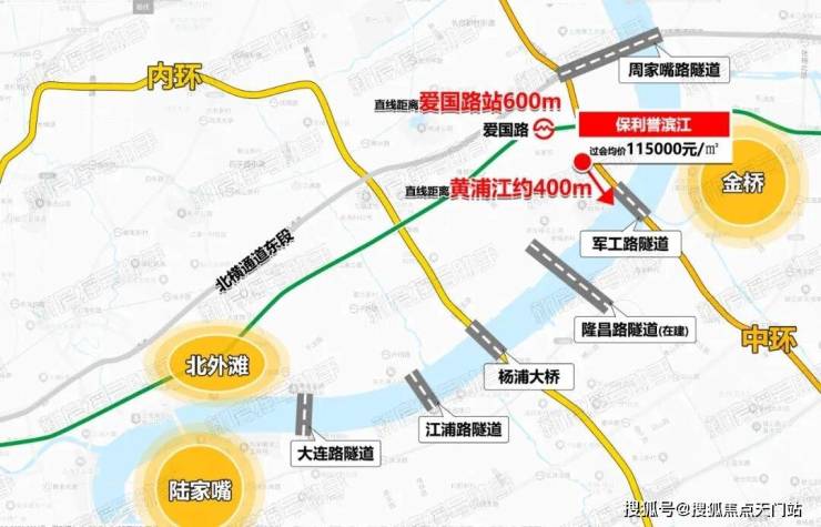 与杨浦滨江新盘普遍距离地铁较远的情况完全不同,项目距地铁12号线爱国路站直线距离仅约600米,(数据来源:百度地图测距)轻松串联静安寺、苏河湾、北外滩等核心商圈,兼顾繁华与静谧的平衡点。而且靠近中环路、军工路隧道以及周家嘴隧道,还有北横通道东段,自驾出行也是相当便利!