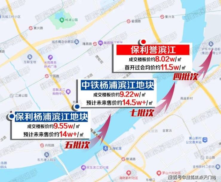 从最开始的四批次地王的成交楼板价80199元/㎡(保利誉滨江)、到五批次土拍刷新地王(成交楼板价95530元/㎡)、再到最近七批次土拍杨浦滨江地块成交楼板价92225元/㎡,1年时间土地价值直接三级连跳!整体溢价率均在26%以上,热度拉满!