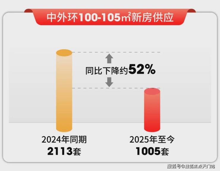 据数据统计2025年至今上海中外环建面约100-105㎡新房供应了1005套,去年同期已经供应2113套,同比下降约52%。