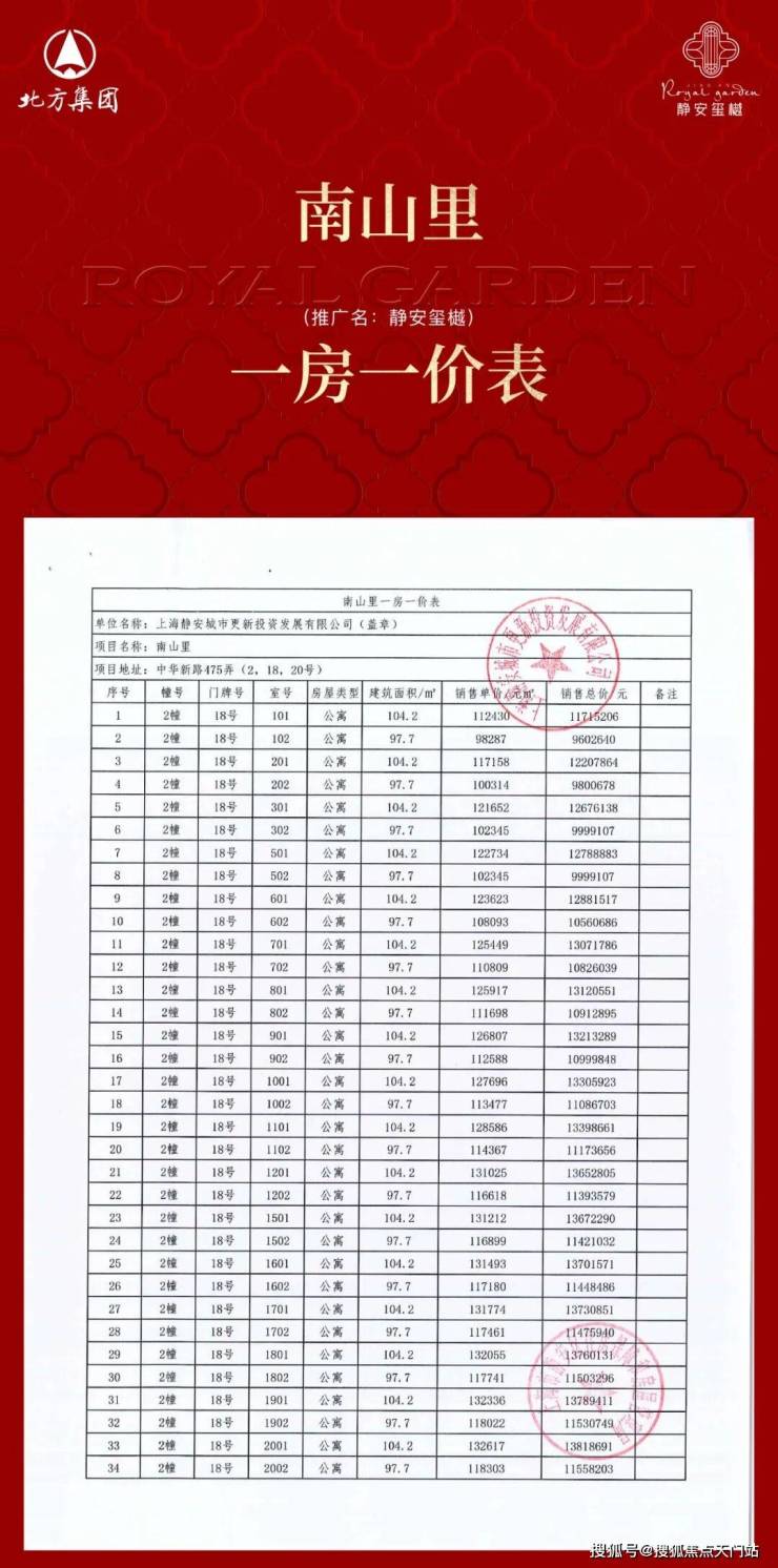 静安玺樾三期一房一价表▼