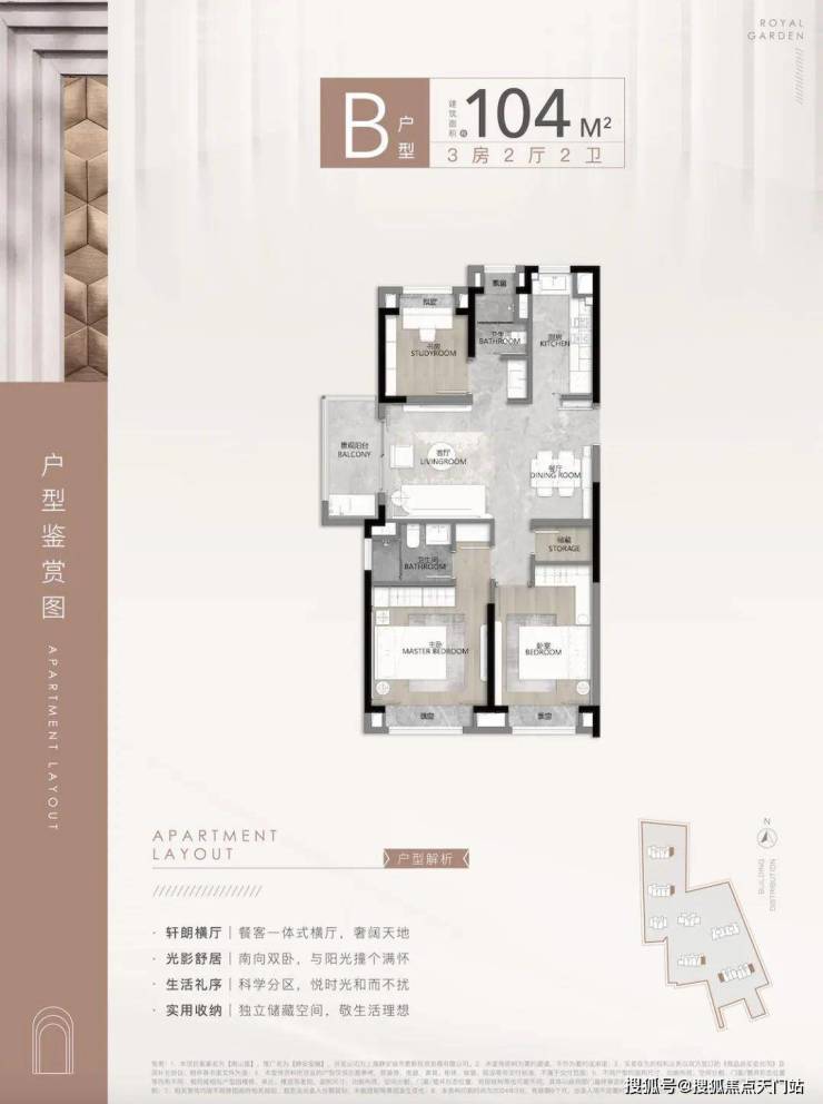 建面约104㎡3房2厅2卫▼
