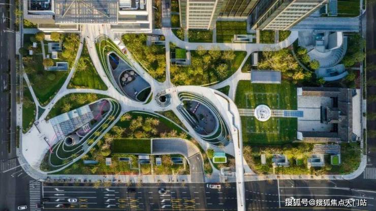 整个景观设计,按照 “翡光礼境”的概念,不是硬生生地塞进社区中,而是做到了与水景、雕塑、绿植一起,体现未来住区的海派生活气质。