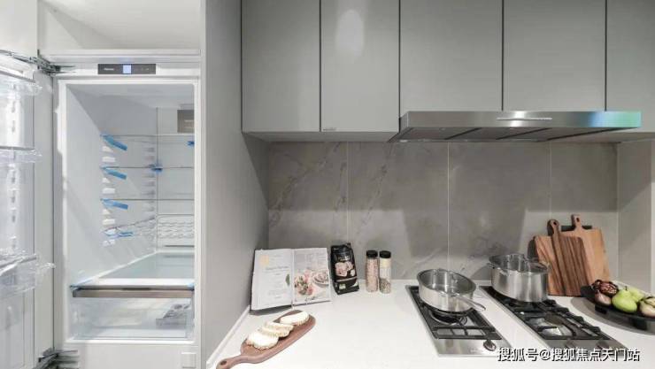厨具方面,油烟机、灶具、洗碗机、烤箱、甚至一般不作为交付的冰箱,均采用了国际知名品牌—— 美诺(或同等档次),这样的五件套配置放眼全市豪宅都非常罕见。