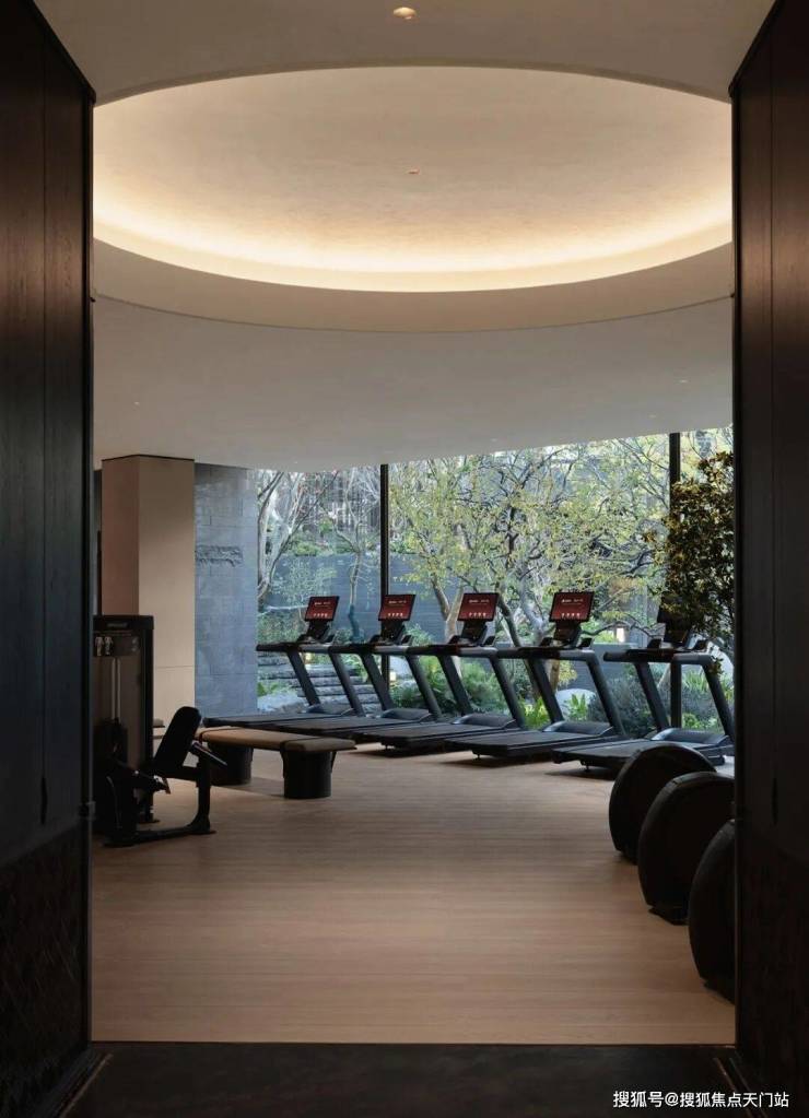 上海首个「不会着凉的」观景健身房 ,依托金茂舒温科技,打破温度对运动的限制,直面山川溪谷盛境,视野开阔。