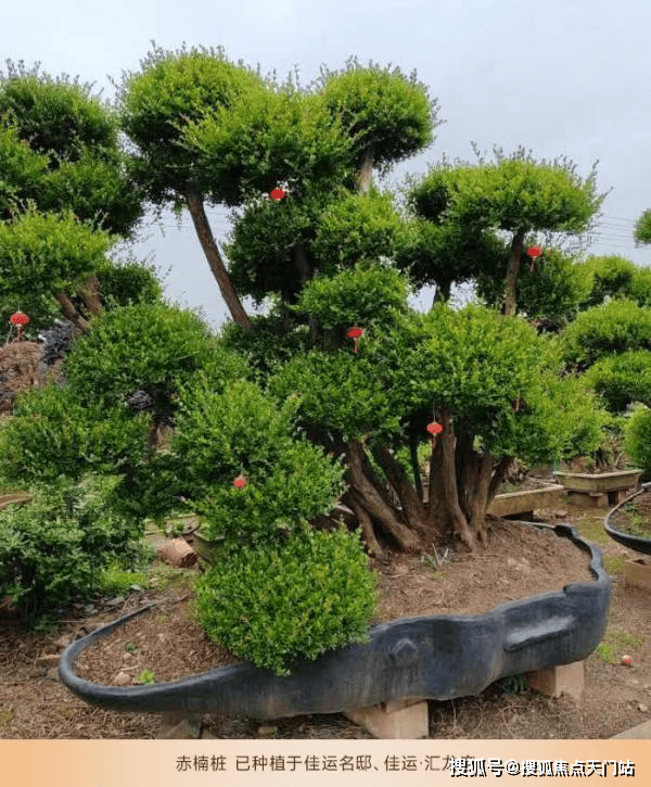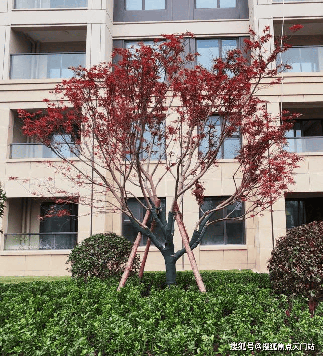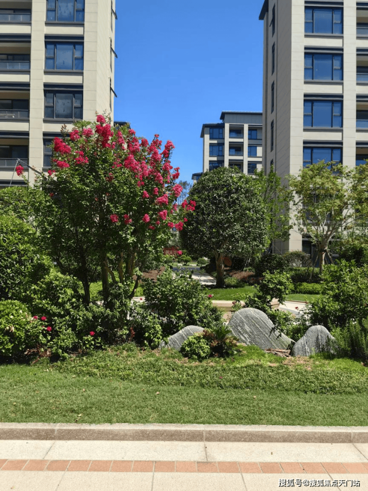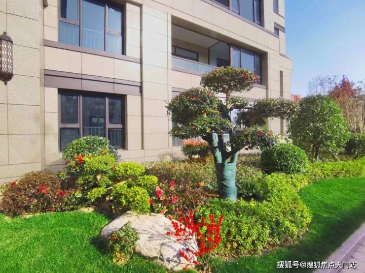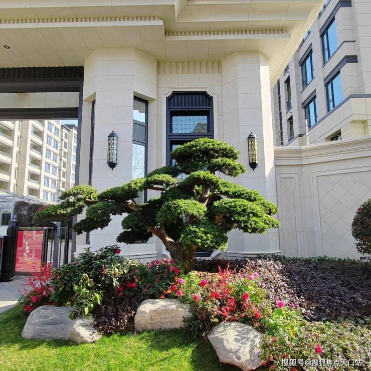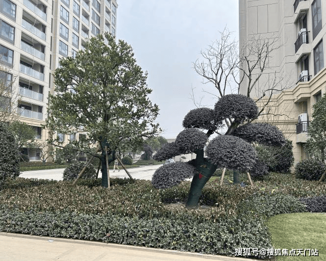 又如社区内的精品造型紫薇老桩和紫薇树、精品造型茶梅老桩和茶梅树、精品造型红花继木老桩、台湾云波冬青、精品造型赤楠老桩、造型杜鹃、精品金玉满堂鸿运果老桩和鸿运果树、相思豆树、金桔树、羽毛枫、黄杨、果石榴树、杨梅树、柿子树、乌桕、红枫、红果冬青、鸡爪槭、造型红梅等高端名贵树种四处可见,每棵树都是精品,这种精益求精的标准,是高兑现度的极致追求。