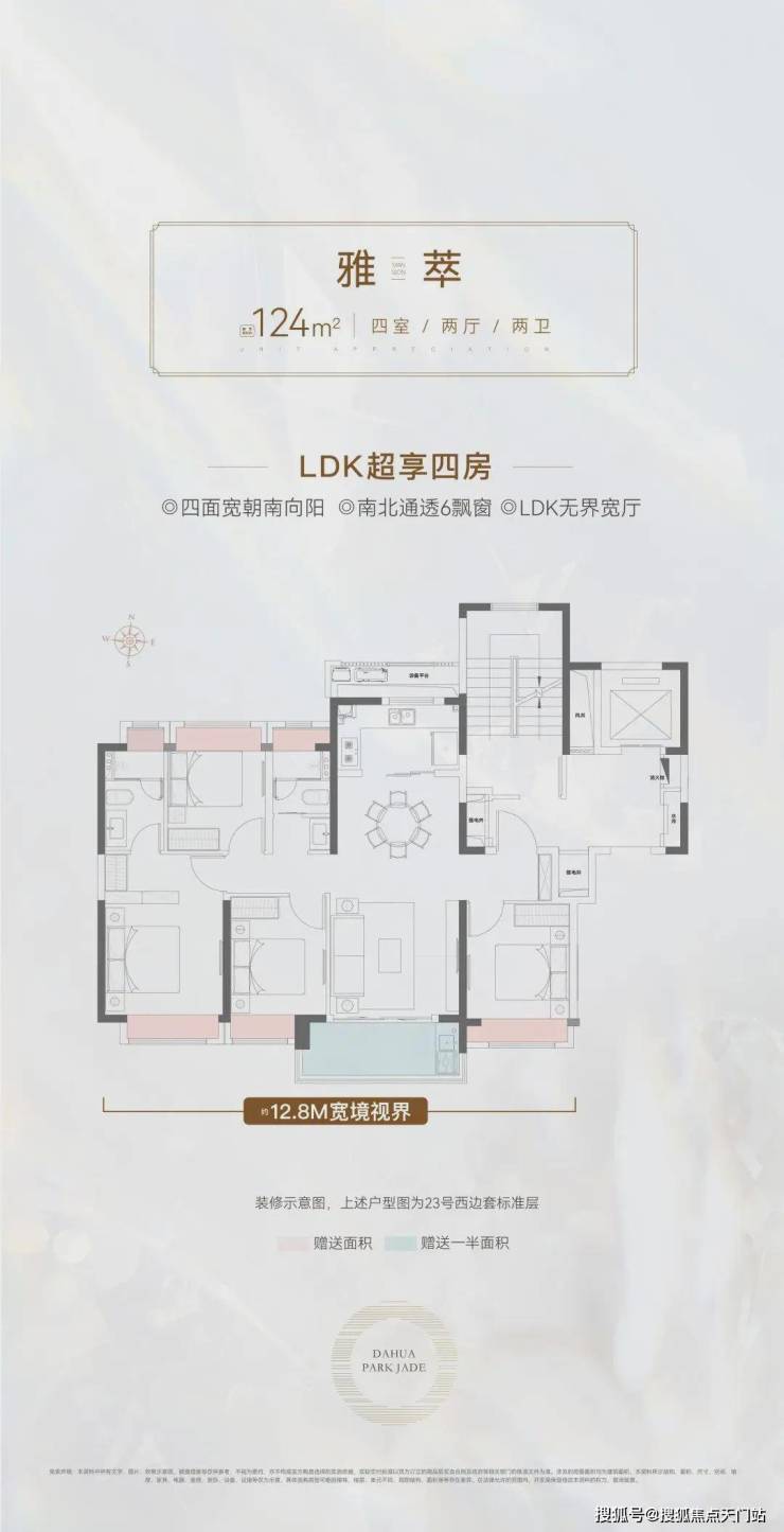 建面约124㎡的4房2卫户型,通常来说是紧凑型的户型。