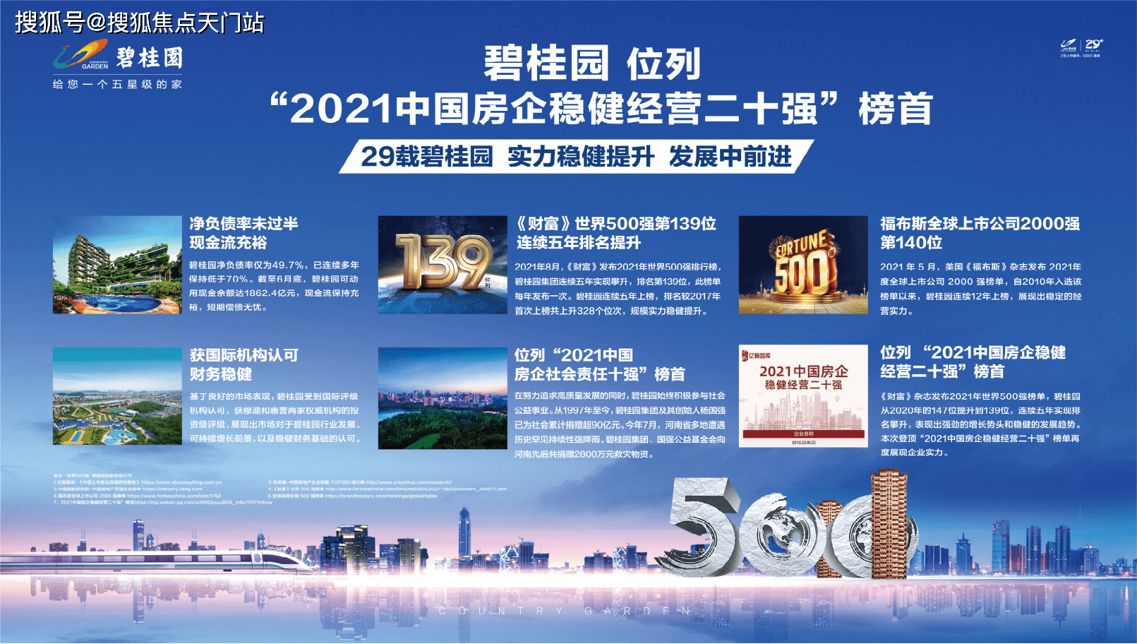 碧桂园成立于1992年,2007年在香港联交所主板上市;是世界500强,中国地产三强。连续多年蝉联中国房企排行榜排名前列!2021年《财富》世界500强榜单发布,排名第139位。29年地产开发经验,碧桂园足迹遍布全球1400个城镇,打造了超2000个高品质项目,为450万户业主带去了现代化的生活方式,更新了城市面貌。