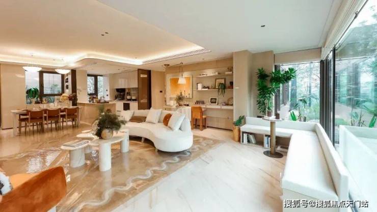 结合局部 弧形玻璃 与 超大窗墙比 ,真正实现了“引景入室”,让家变成公园的观景台,重新定义了居住的视野界限。
