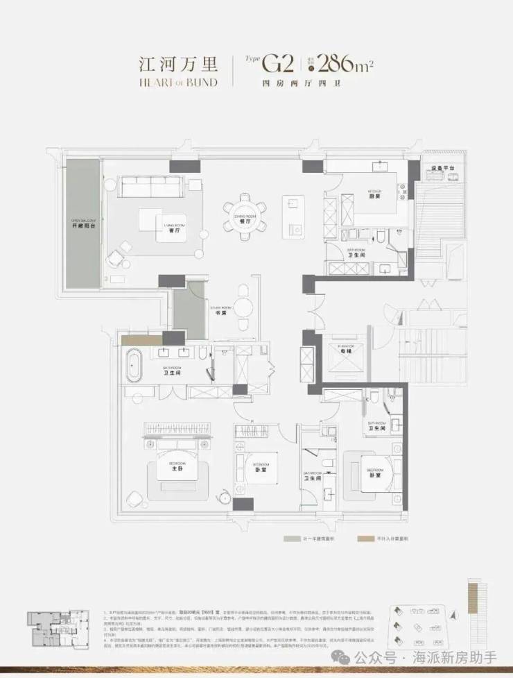 户型方面,建面约230-285㎡「环幕江景舱」,以270°无界平层结构,配合3.3米层高(部分)和全景落地窗,实现上海滨江市场罕见的IMAX环幕江景视野。而且滨江大户型采用颠覆性设计,让户型灵活可变,适配高定人生!