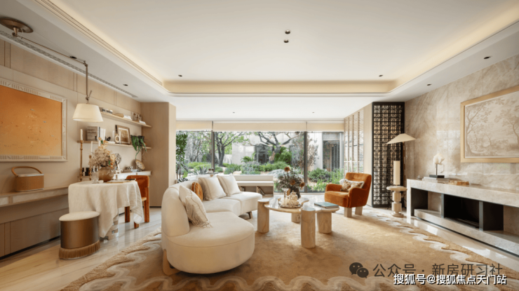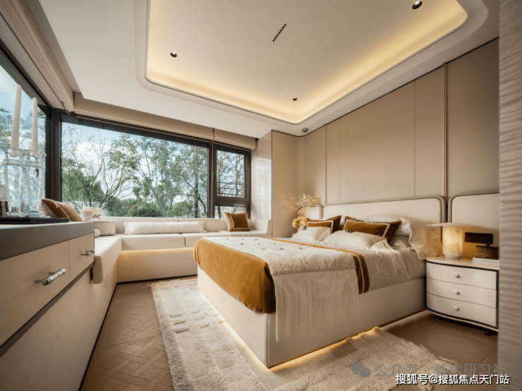 结合局部 弧形玻璃 与 超大窗墙比 ,真正实现了“引景入室”,让家变成公园的观景台,重新定义了居住的视野界限。