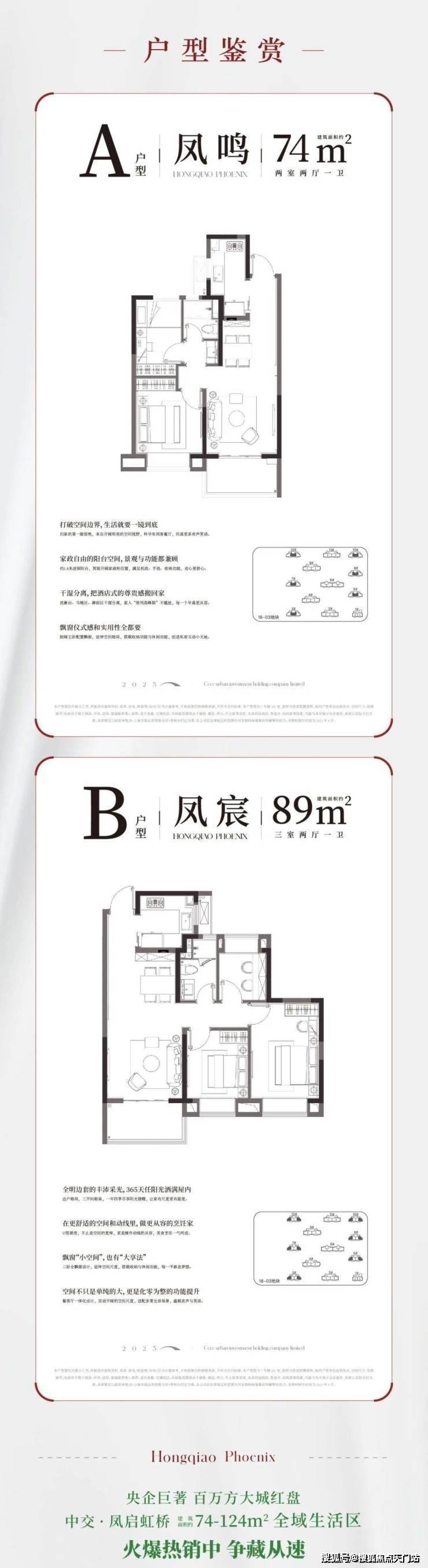 中交·凤启虹桥 售楼处电话:400-1182-105一脉相承央企精工品质,深度剖析当代城市青年人居需求,在户型打造上,以74-127㎡覆盖全生命周期,从二人世界、三口之家,到二孩时代、三代同堂均可满足。