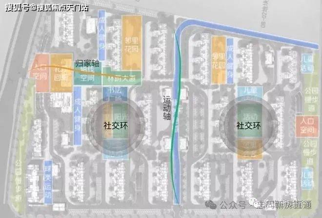 归家轴-三进式归家动线,串联前庭广场、礼序回廊、归家轴线、林荫大道,酒店式大堂入户,彰显逸境与尊居;运动轴-中央康养跑道,200米南北景观中轴,形成社区活力之源;社交环-社区中央会客厅,邻里花园、阳光草坪、儿…
