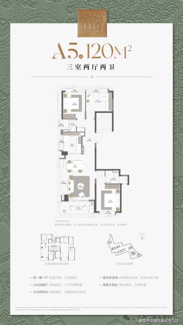 建面约120㎡边套3房:位于整个社区的最西侧,约270°的巨幕视野让这个户型的采光、视野达到顶峰,低总价的上车首选;