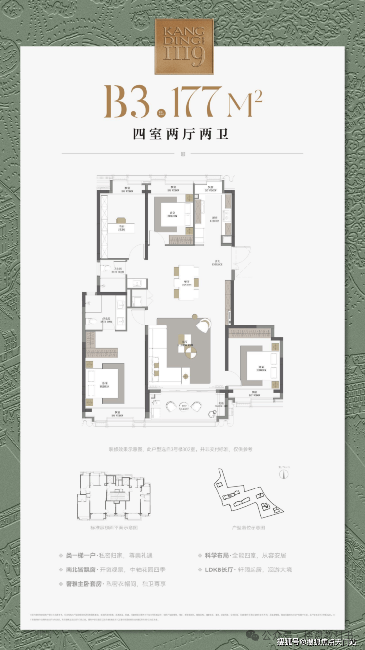 建面约177㎡4房,总价约2800-3200万。