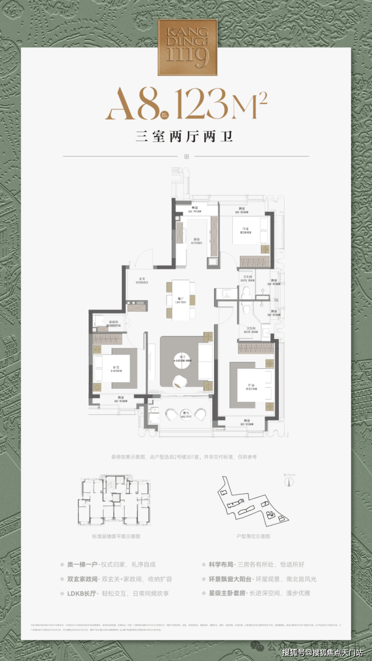 除此之外,坐拥双台盆独立卫浴+步入式衣帽间的主卧套房、5飘窗+1阳台的超大空间延展、干湿分离的客卫、尺度感惊人的客餐厅...这个户型拥有一个好户型应该有的所有特质。