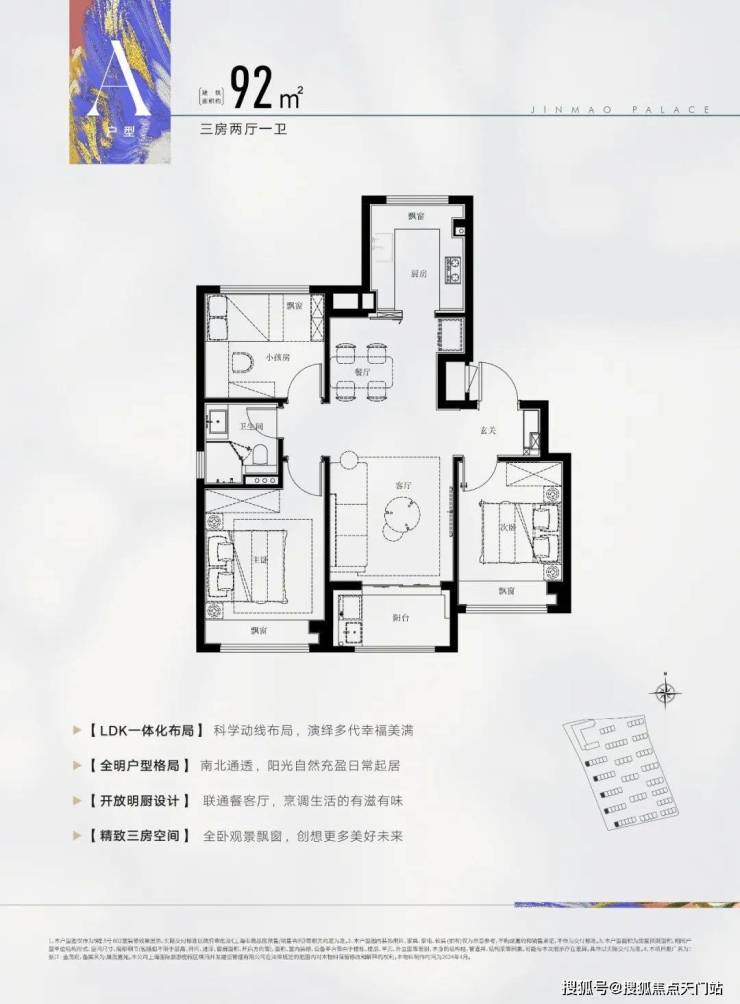 三开间朝南、方正格局,是一家三口或年轻夫妻居住的超级舒适户型。