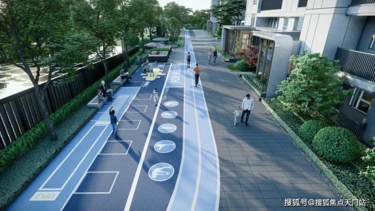 采用经典的 中轴对称设计手法,社区内 以中央景观轴+中央景观花园为核心,规划“一轴、一心、一环、五园”的景观布局,打造了美学会客厅, 阳光大草坪,下沉式书吧、环形跑道和五个楼幢景观花园等多个主题景观组团,打造社区人性化、景观功能化、配套全龄化的 全维度生态住宅。