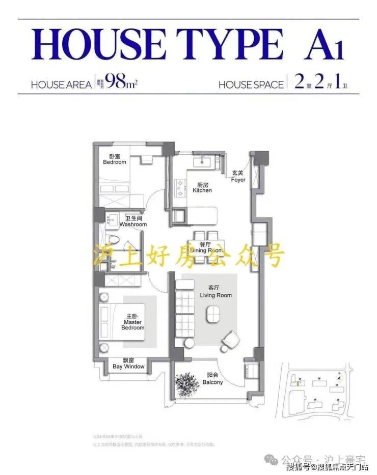 建面约98㎡2房户型▼