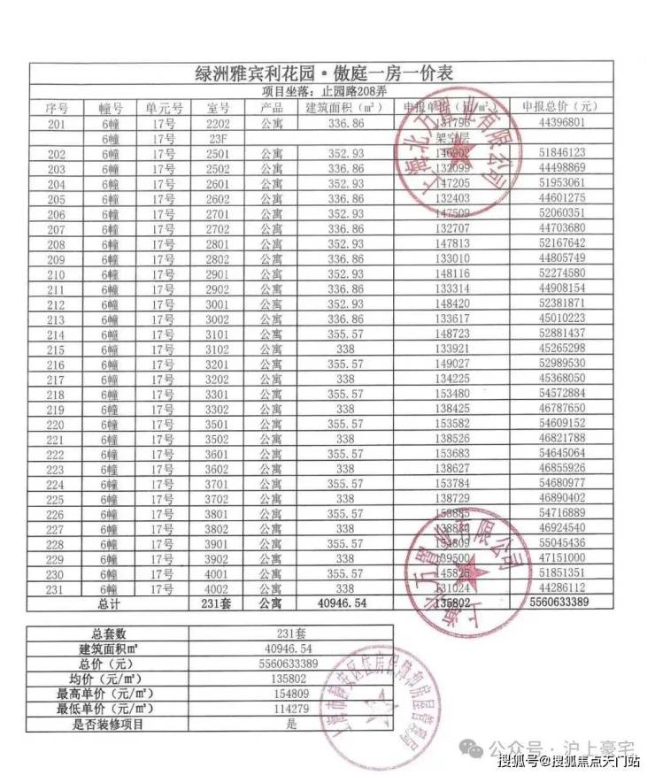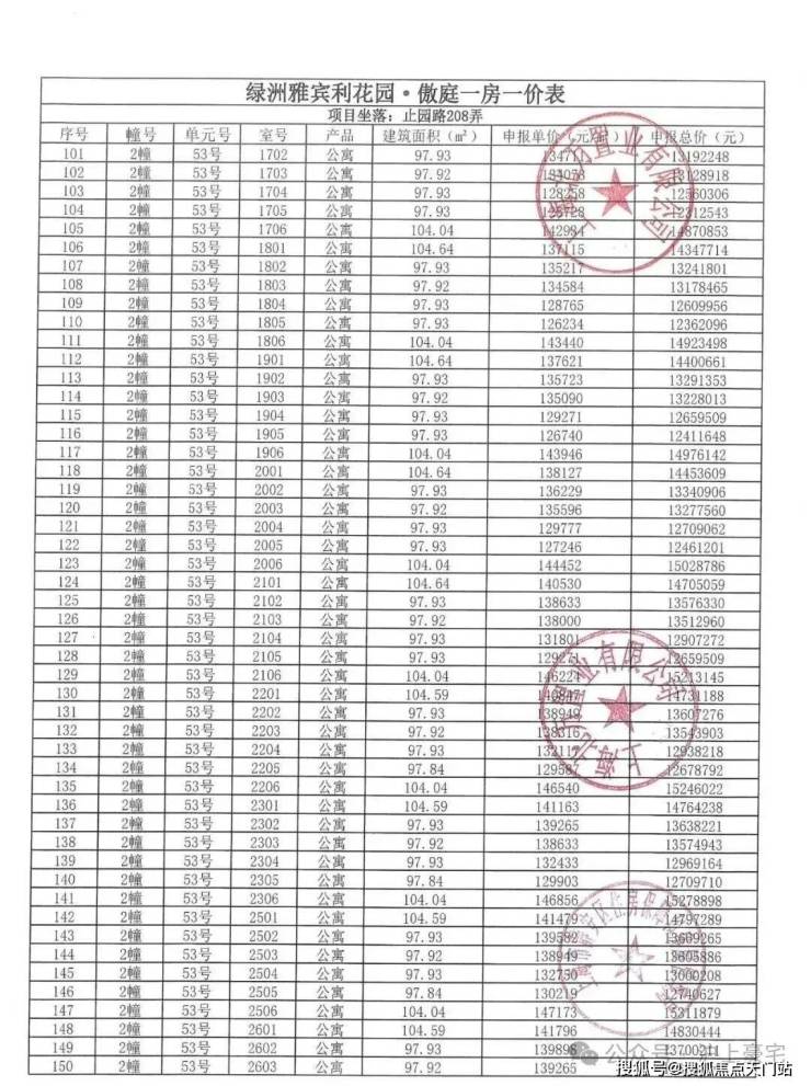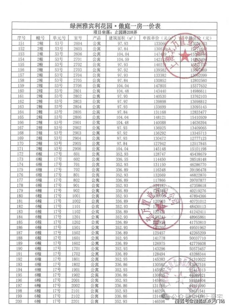 万科中兴傲舍一房一价表▼