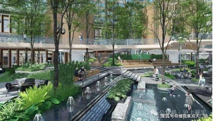 地面上还有可游玩、具有参与感的水景,比如森感公园有一个休闲戏水景观,彷佛走到欧洲罗马的大广场一样,气场十足。