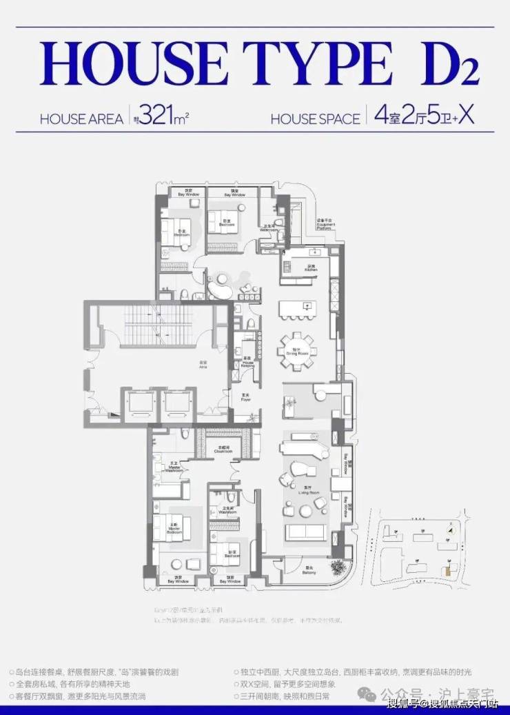 此外,客餐厅一体化、约 270° 弧形观景阳台配全卧飘窗皆为标配。