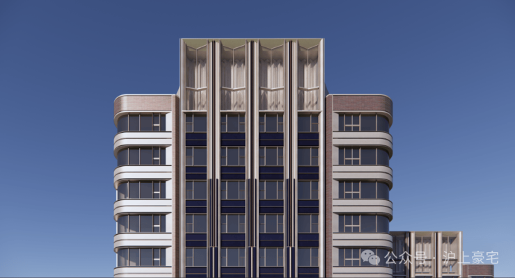 住宅立面颜色 以珍珠蓝为核心,搭配香槟金、海派红,两侧还采用弧形设计,比方正的建筑看起来更柔和,也让视野更大化,实现约270°观景。