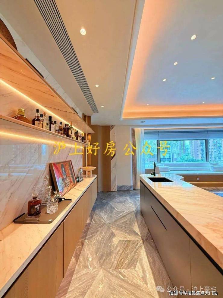 比如,弧形、奢石与灯光等相得益彰且设计感满满的架空层。