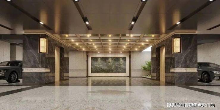 项目一楼设计星级入户大堂!挑高穹顶之下,天然石材与金属线条,交织出当代艺术馆般恢弘气度!