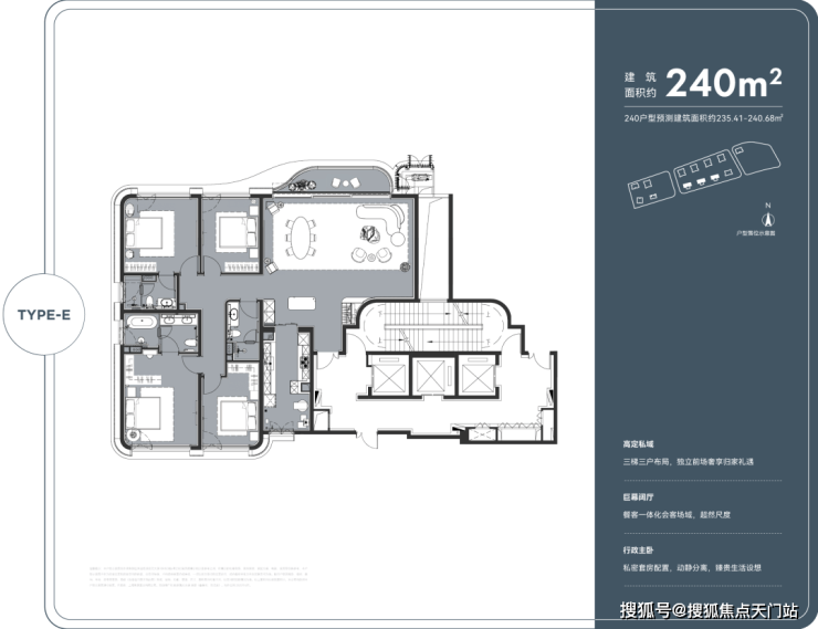 纯粹圈层:仅 378 户低密大平层,三梯两户配置,圈层纯粹,私密性强。