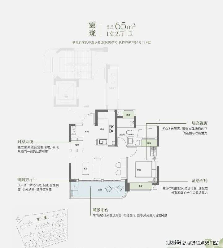 约9.8米南向面宽,配以超大尺度跑道式阳台,让室内外交融共生。