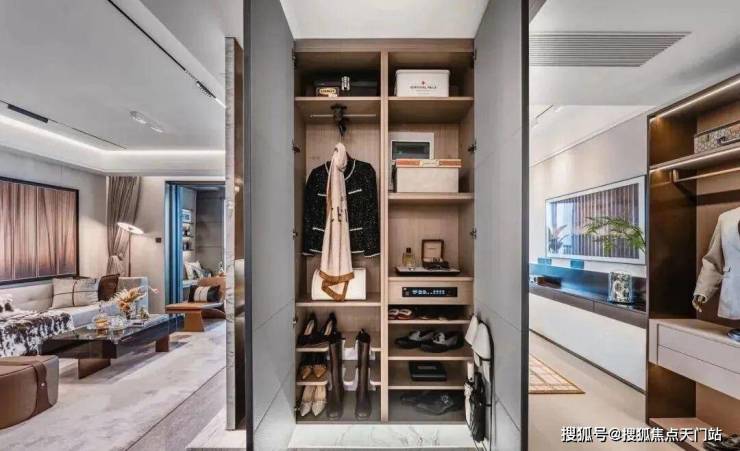 入户后,所有玄关柜均为交付标准,还精心配置了“除臭精灵”,下方更预留了扫地机器人的空间,为日常起居提供便利;像传统的豪宅三大件,项目采用大金品牌中央空调地暖两联供,以及格兰斯柯的新风。