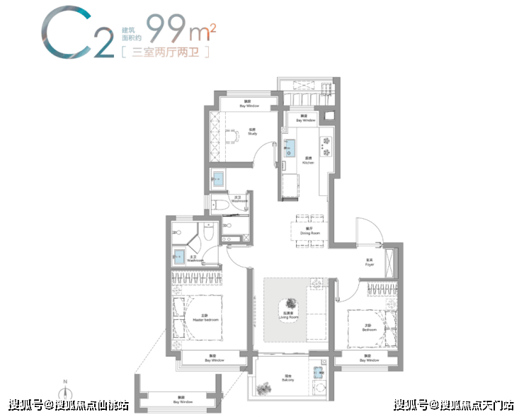 建面约99㎡的C1户型带来新风、地暖、空调三大件,带来全天候的舒适体感与清新空气,为家人的健康保驾护航;除了洗碗机在内的厨房三件套,更是贴心引入集成线性凉霸,让每一次下厨都成为一种享受;卫浴双智能马桶(2卫户型),让生活智享洁净;主卫美妆冰箱,更为爱美的女主人带来精致体验;而玄关入口处精致的花纹、极具质感的背景墙、优雅的弧形吊顶、典雅的人字拼地板……无一不彰显着惬意质感。