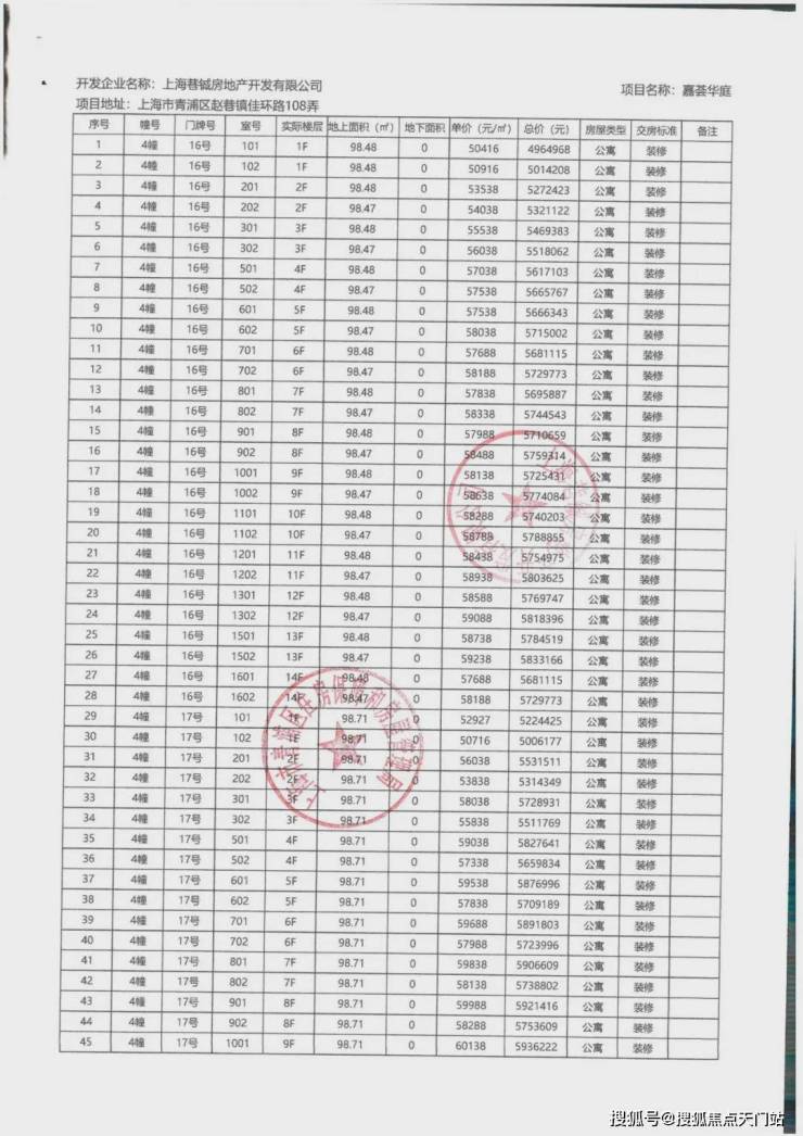 上期一房一价表