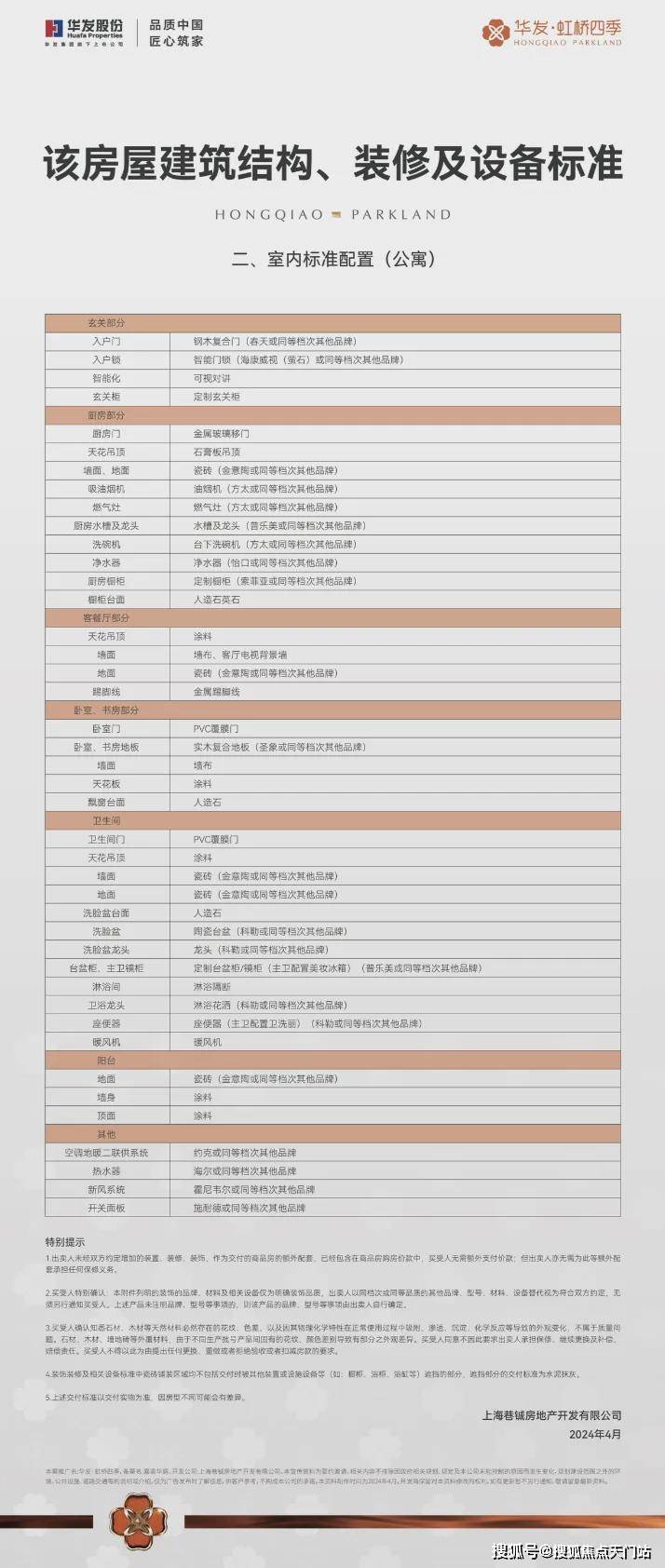 更有霍尼韦尔(或同等档次品牌) 的新风、方太(或同等档次品牌) 的油烟机和洗碗机、科勒(或同等档次品牌) 的龙头和台盆、百年约克、圣象、施耐德等(或同等档次品牌) 其他品牌国际一线品牌为生活保驾护航。