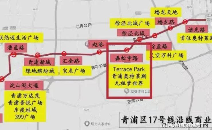 17号线嘉松中路站,当下规划了“重量级TOD商业”,青浦商业消费新地标Terrace Park,是大虹桥首个日式购物中心,计划引入180余家商户品牌,预计今年正式开业,无疑是休闲购物好去处。