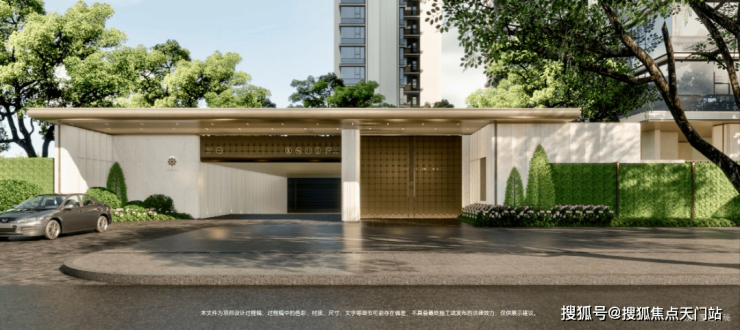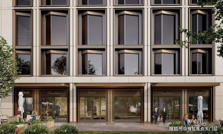 材质上,采用 大面积玻璃+铝板+石材 ,配以雅奢香槟金暖白配色,低饱和度,质感高级,尽显品味!