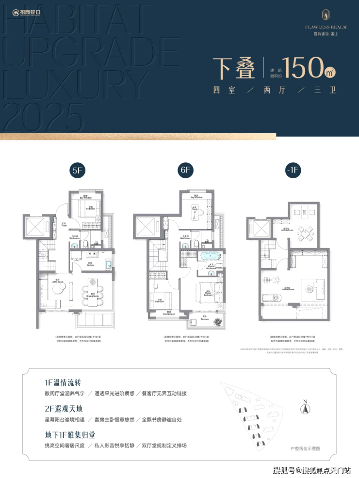 招商臻境目前还在售建筑面积约146-150㎡甄稀的滨水叠墅。