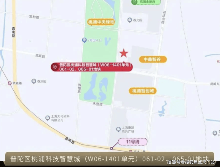 2023年12月,金隅以22.77亿元竞得普陀区桃浦科技智慧城(W06-1401单元)061-02、065-01地块,出让面积18411.4㎡,容积率2.5,房地联动价8.55万/㎡。