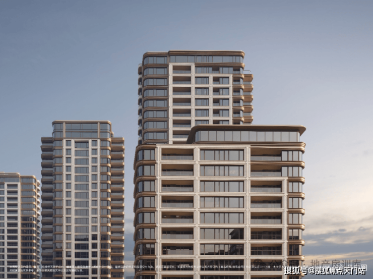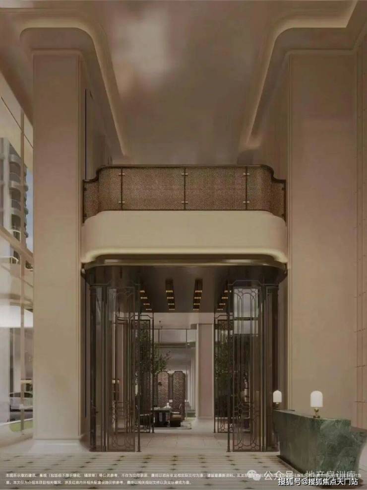 项目建筑外立面灵感源自名表马耳他十字工艺,采用名贵石材+金属铝板,以东方圆融思想整合以雕刻的石材锻打的金属,呈现出独特的人居地标美学。采用大量的玻璃幕墙,增强建筑的通透感和现代感。