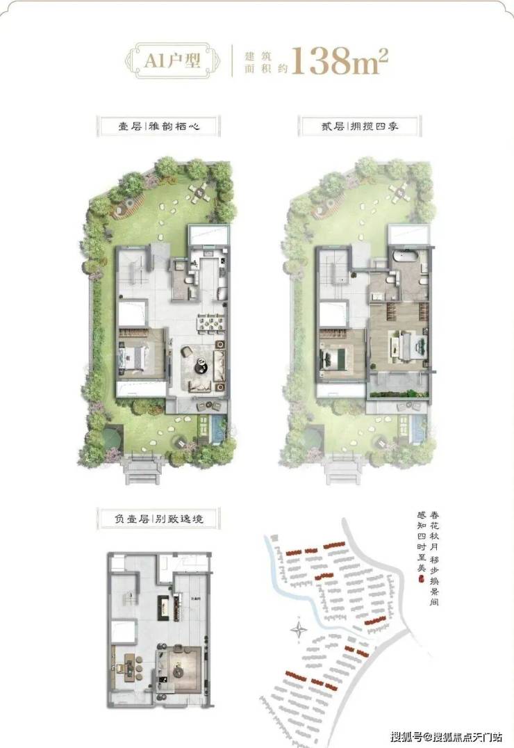 从户型设计上看:建面约138-188㎡联排与建面约211-214㎡院墅产品,庭前绿地,大面宽,地上仅2层,真正的低密宽境别墅,产品力断层式领先。