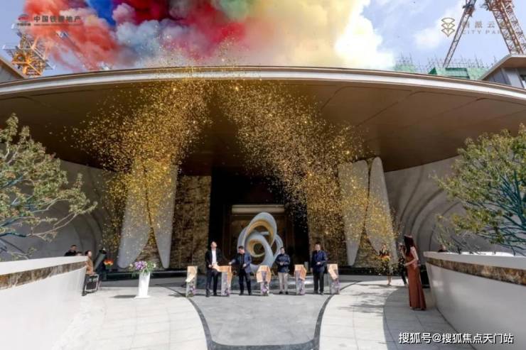 活动现场,中国铁建地产华东公司相关领导与众多嘉宾齐聚,共同执起金剪。礼炮声响,彩带飘落,这座传闻已久的"悬浮社区",正式向时代敞开大门。