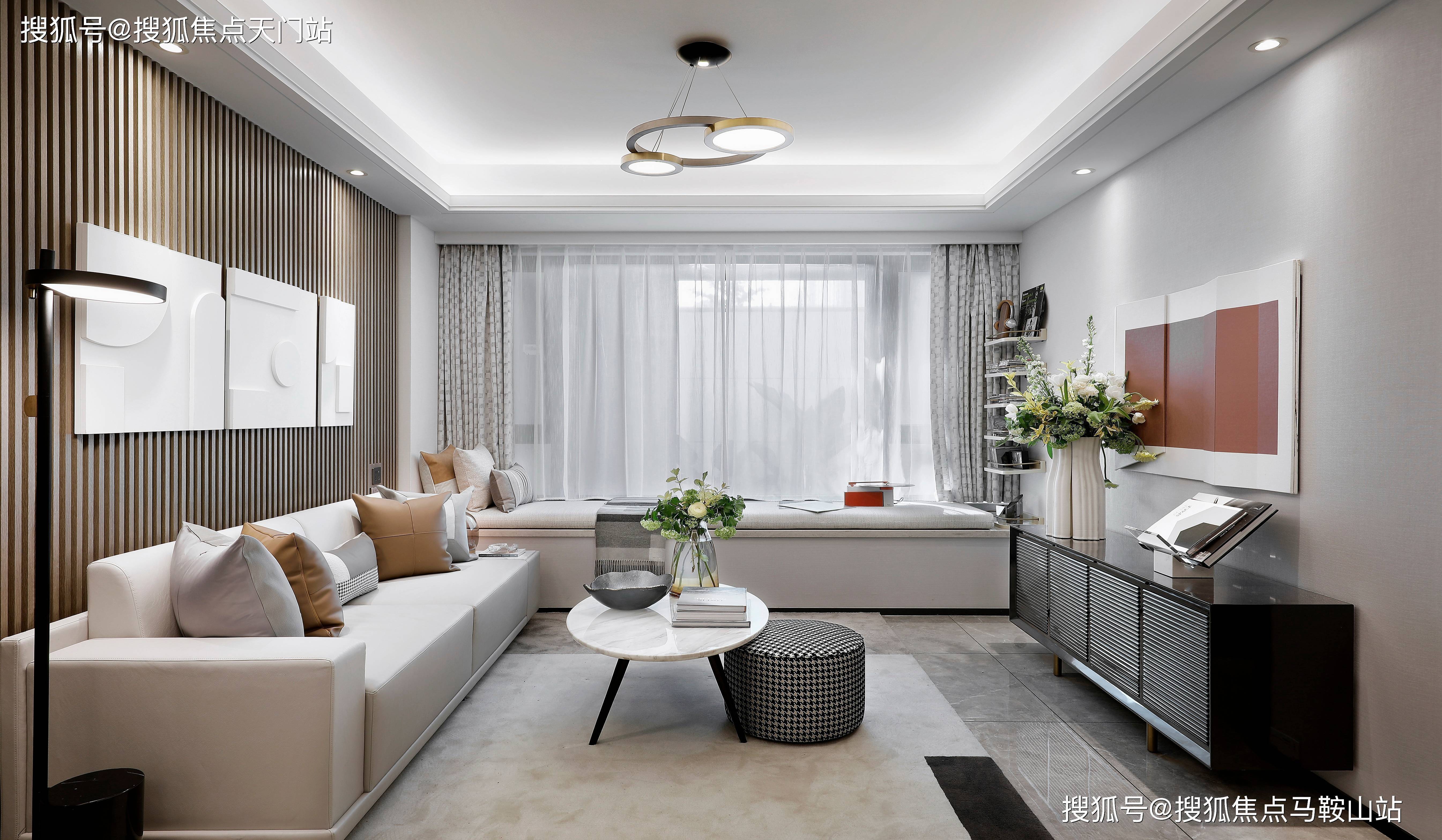 整体采用岩灰系的装修色调,运用门套通高设计、回字形吊顶迭代回光灯带、采用金属踢脚线和仿石材地砖等,让空间美学和质感全面提升。