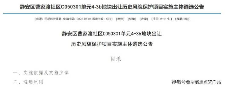 2022年6月,静安区人民政府官宣了曹家渡社区C050301单元4-3b地块的出让公告。