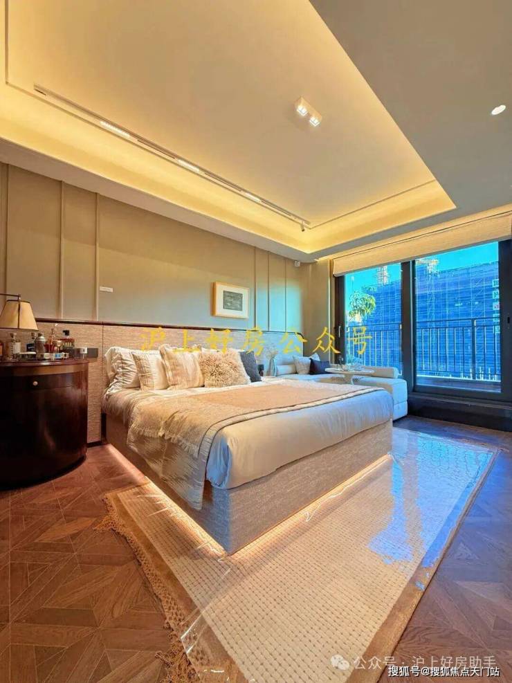建面约139㎡精奢上叠,南向面宽同样达到了约9.2m、三开间朝南,首层全明设计,南北通透,面面瞰景,大尺度U型厨房,约2.2m的大岛台,搭配LDKB一体化动线,盛载亲情时光,温馨南向卧室搭配全景飘窗,满足家中长辈静心安居所需;