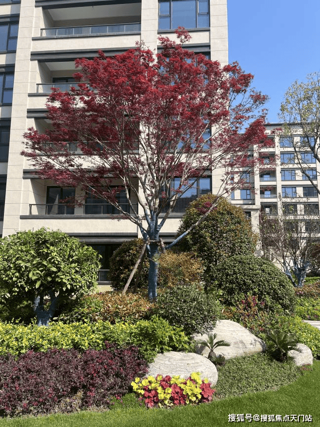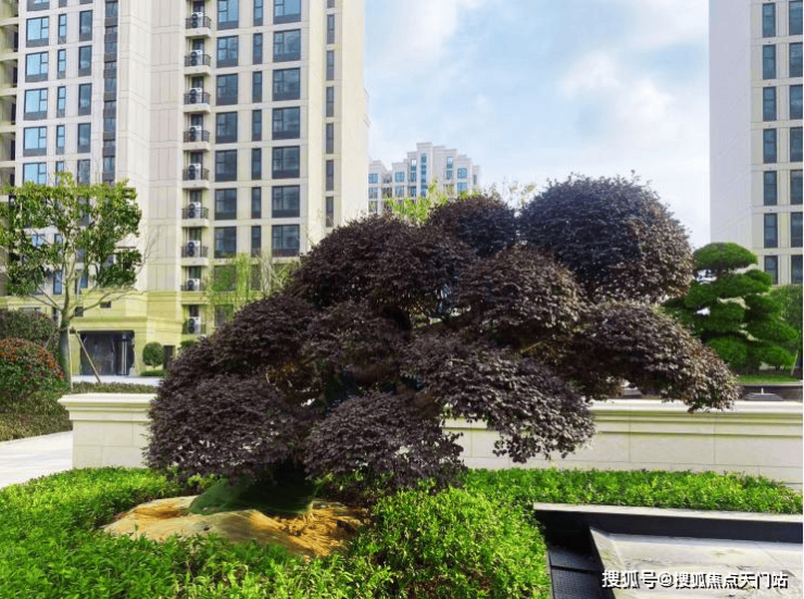 又如社区内的精品造型紫薇老桩和紫薇树、精品造型茶梅老桩和茶梅树、精品造型红花继木老桩、台湾云波冬青、精品造型赤楠老桩、造型杜鹃、精品金玉满堂鸿运果老桩和鸿运果树、相思豆树、金桔树、羽毛枫、黄杨、果石榴树、杨梅树、柿子树、乌桕、红枫、红果冬青、鸡爪槭、造型红梅等高端名贵树种四处可见,每棵树都是精品,这种精益求精的标准,是高兑现度的极致追求。