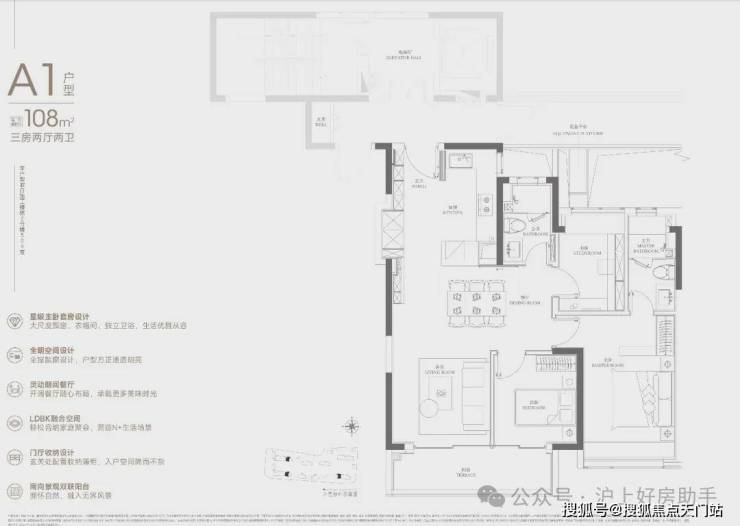 108㎡的入门级三房,起步门槛相比润府提高不少。