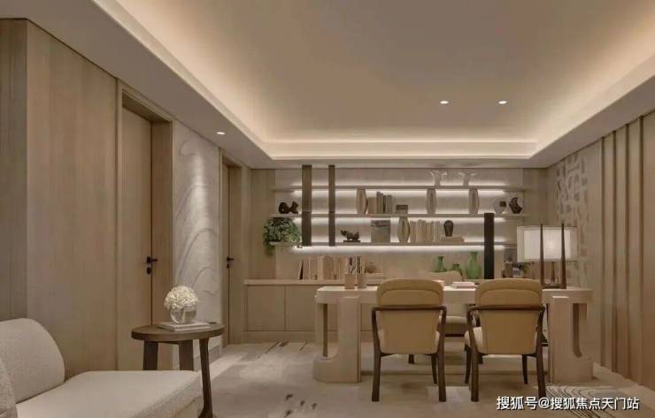 夹层被安置成了书房,安静、雅致,为了显露对生活的慰藉,像是把精神世界现实化的地方,展现修养、审美甚至家风。也如三毛在《送你一匹马》中所说:“许多时候,自己可能以为许多看过的书籍都成过眼烟云,不复记忆,其实他们仍是潜在的。”