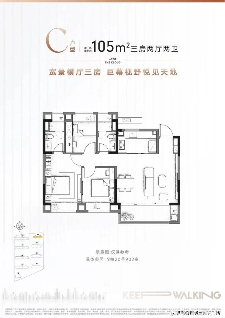 建面约105㎡3房2厅2卫▼