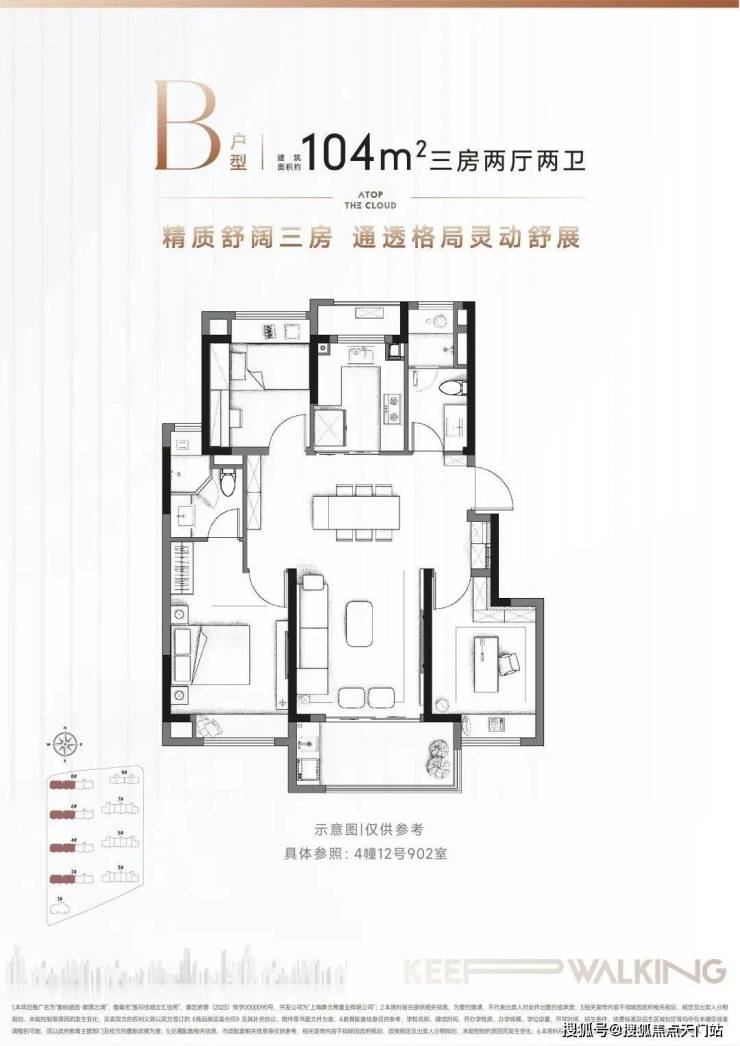 建面约104㎡3房2厅2卫▼