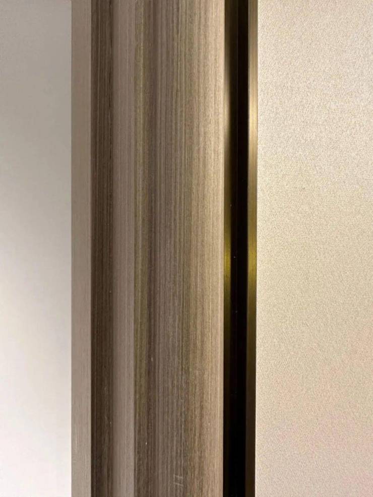而且,门套做了弧形设计后,还叠加了金属线与墙纸做了分割,加强隔断界限感,提升室内家居精致度~
